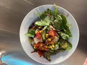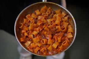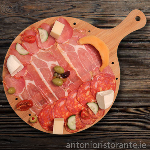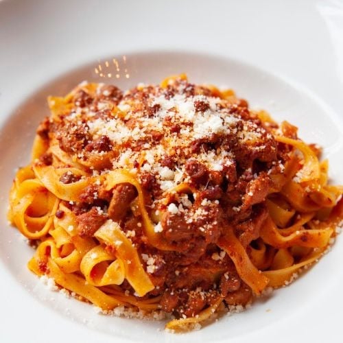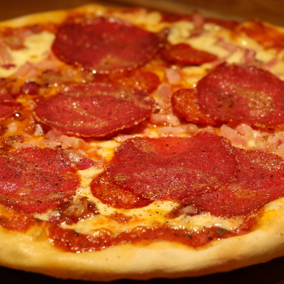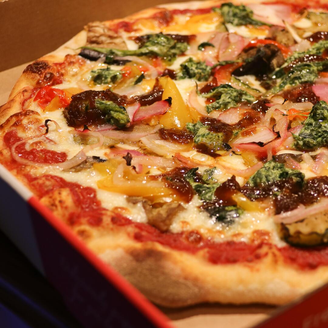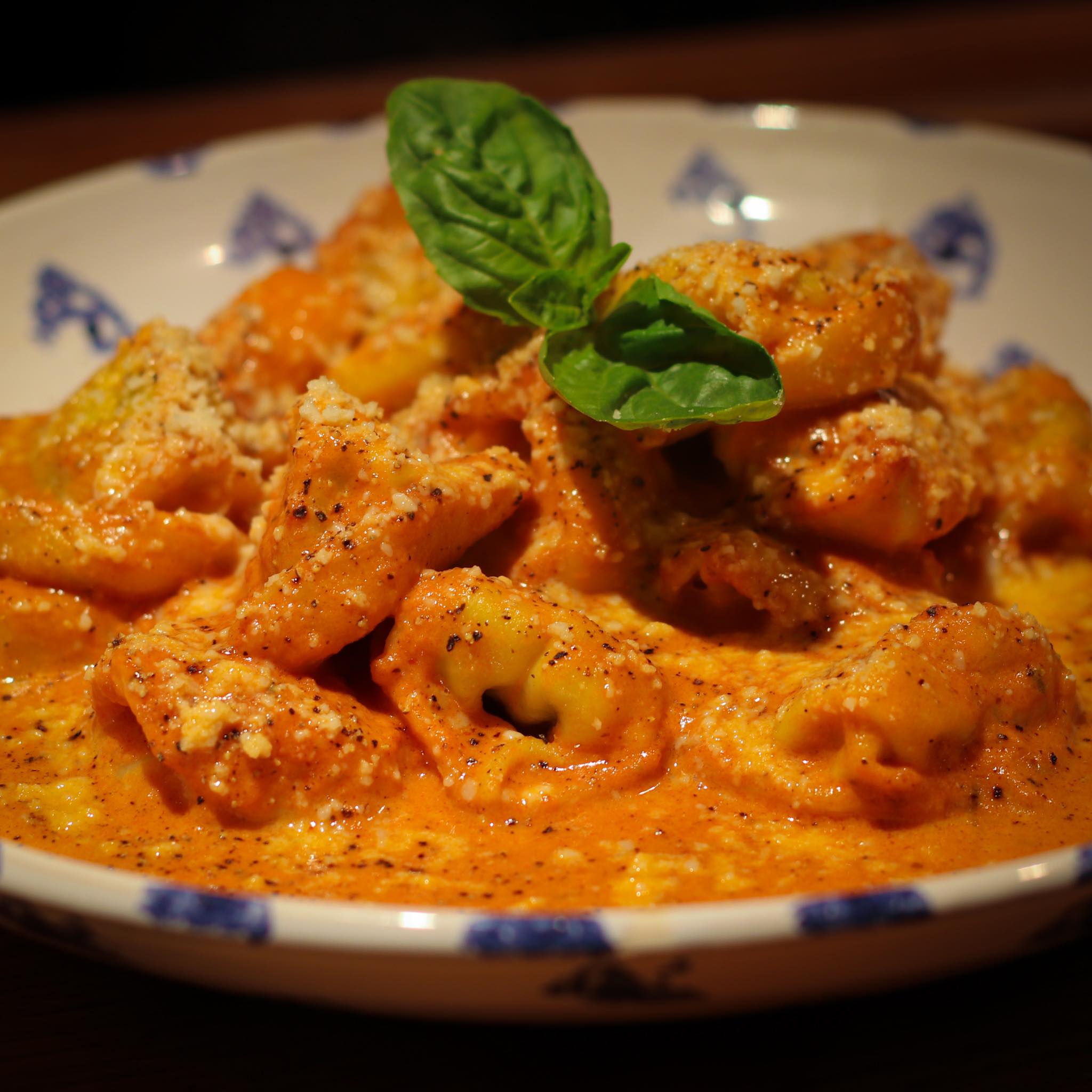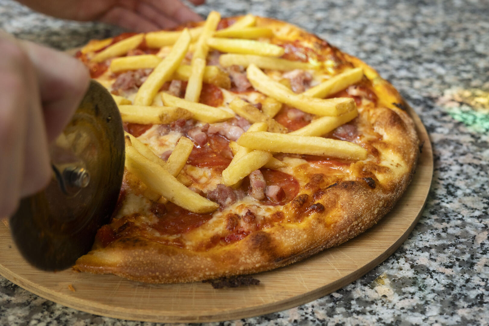 Half-moon folded pizza filled with mozzarella cheese, Nduja Calabrian spicy sausage, spicy salame and Italian sausage topped with a dash of tomato sauce.