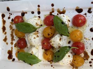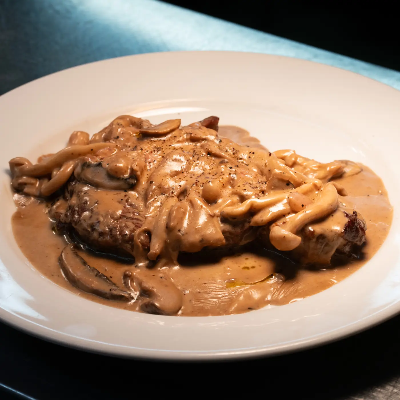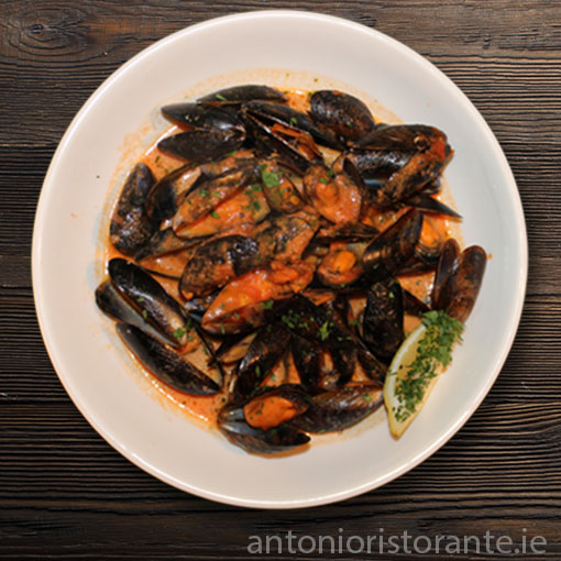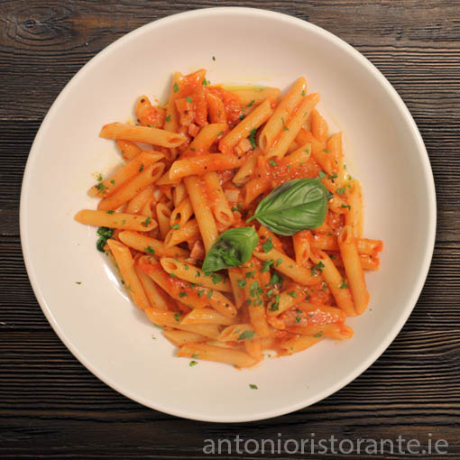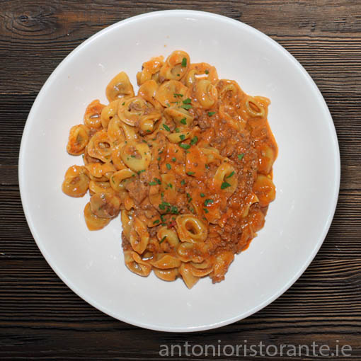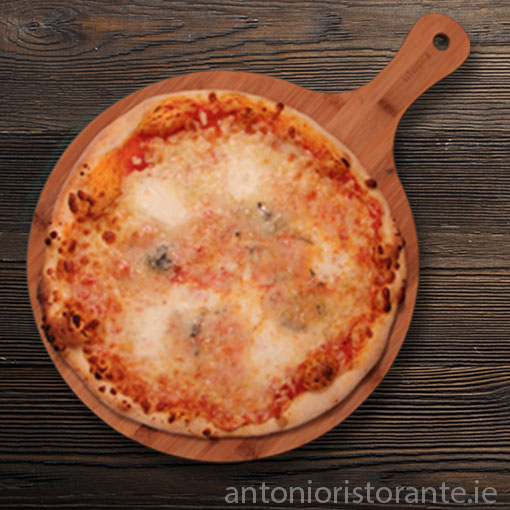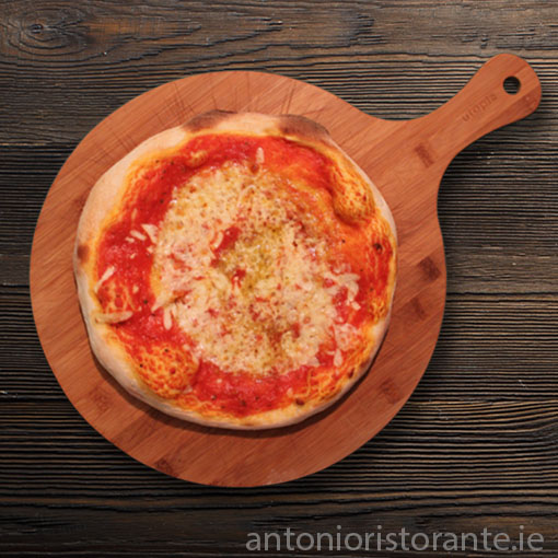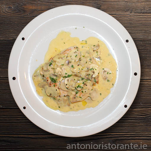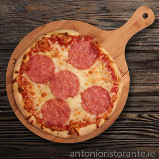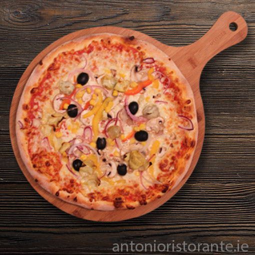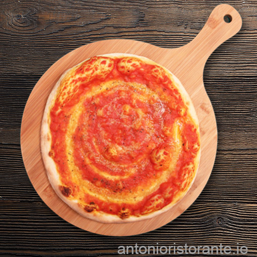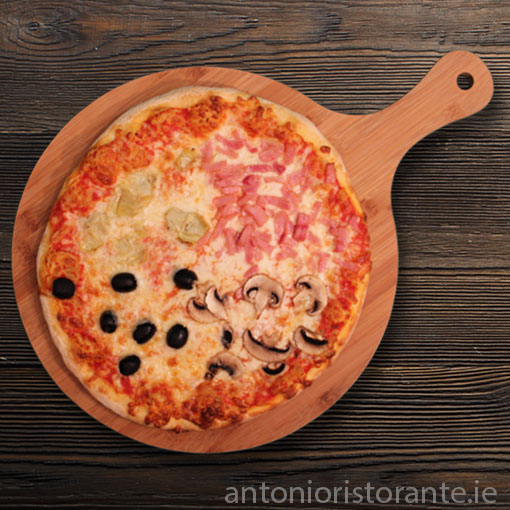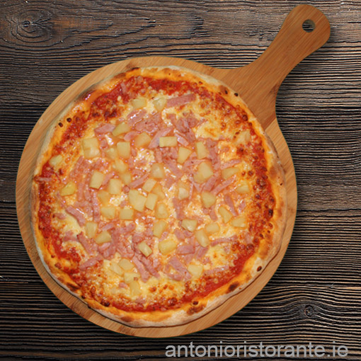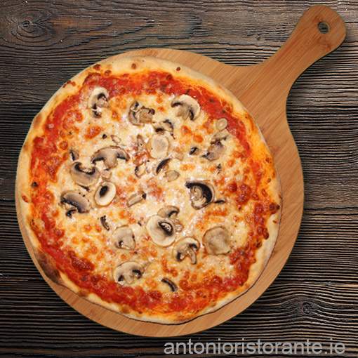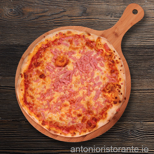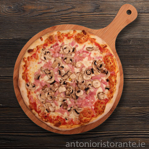 Half-moon folded pizza filled mozzarella cheese, ham and mushrooms topped with a dash of tomato sauce.